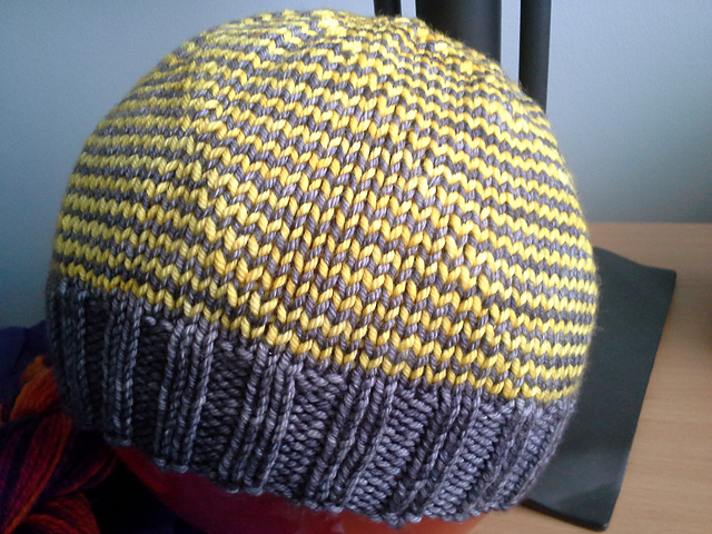 Not too much to say about this one. It was pretty easy and fast. The pattern is somewhat confusing about moving the start of round stitch marker--never really tells you how to work in your color changes. I tried a few rounds of moving the color change with the marker but that looked like crap so I gave up and changed colors at the same stitch every round. I eventually stopped moving the stitch marker altogether because I couldn't see the point. I'm sure I'm missing something totally obvious, but whatever, it looks fine. And it is, as advertised, totally reversible.